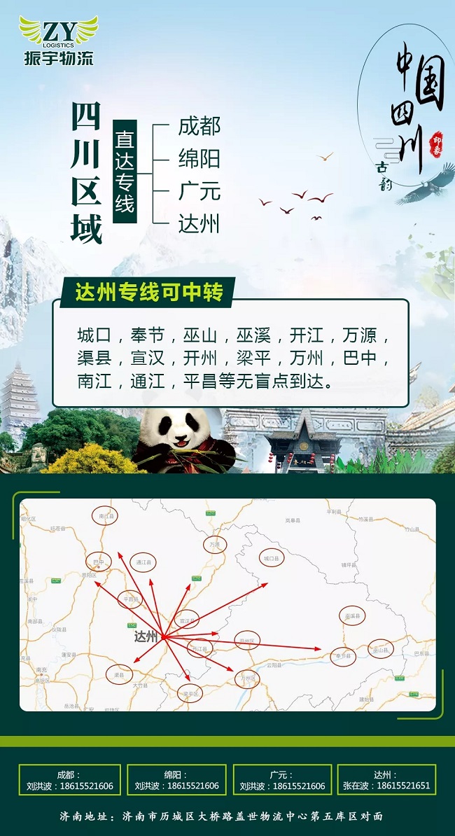 達(dá)州專線可中轉(zhuǎn)城口,奉節(jié),巫山,巫溪,開江,萬源,渠縣,宣漢,開州,梁平,萬州,巴中,南江,通江,平昌等無盲點到達(dá),解決大件異行設(shè)備的中轉(zhuǎn)困難!