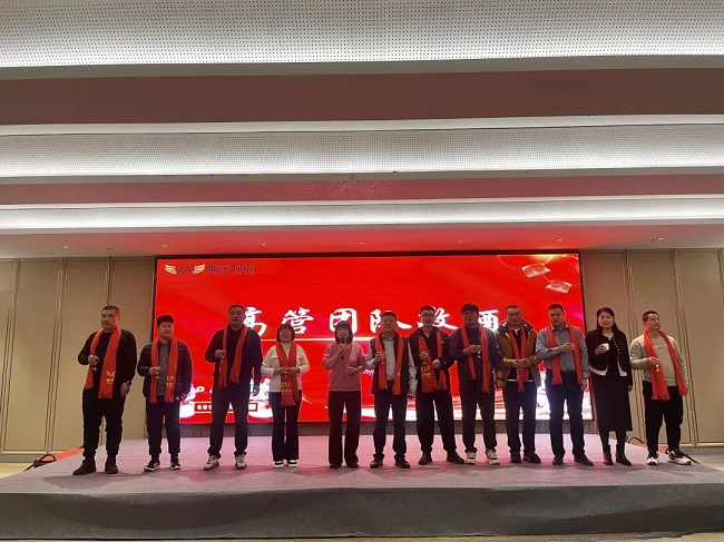 年會上,董事長張憲振與副董事長高巖帶領(lǐng)高管團(tuán)隊登上舞臺,向在場的每一位家人敬酒。他們舉杯共祝,感謝每一位員工的辛勤付出,并發(fā)表了深情的祝酒詞。他們的話語中充滿了對公司的熱愛和對未來的憧憬,也表達(dá)了對全體員工及家人的美好祝愿。