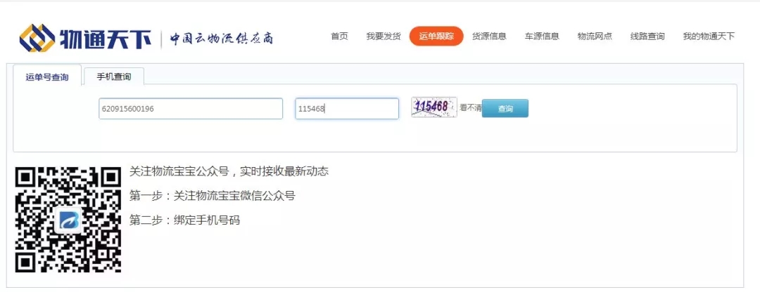 2、找到訂單上的運單號,請在您的運單號前加62091,輸入驗證碼。