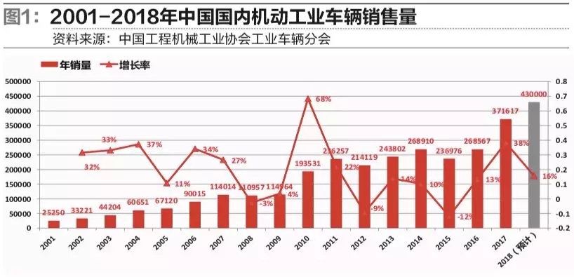中國已成為工業(yè)車輛全球第一的產(chǎn)銷大國。2017 年,中國叉車銷量約 49 萬臺,同比增長 34.23%。其中,國內(nèi)市場銷量 37 萬臺,同比增長約 38%;出口 12 萬臺,同比增長約 23%。2018年1-8月,中國叉車銷售量已突破40萬臺,達409283臺,同比增長26.7%,其中出口110682臺,比去年同期增幅達37.5%。預計,2018年中國叉車銷量約為58萬臺,其中,國內(nèi)銷量約為43萬臺,無論是總銷售量、還是國內(nèi)市場和出口數(shù)量均超出預期。